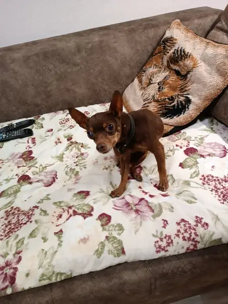 Черного цвета,лапки с коричневым окрасом,молодой, ему пол года, пропал на улице красноармейская 19, выбежал из гаража. Когда есть хочет, может укусить. Еще у него 4 клыка, еще не выпали и селина на шее.