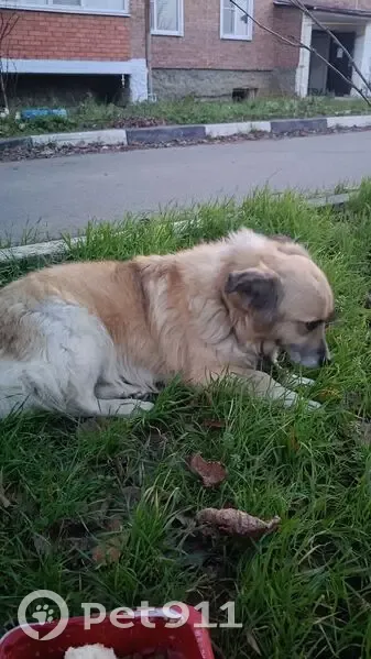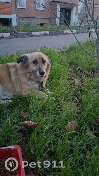 Приблудилась во двор собака. На шее ошейник с карабином, видимо потерялась. Не агрессивная, но на контакт идет с осторожностью. Походка очень медленная, короткими шагами. Пол неизвестен. Просьба сообщить хозяевам . Найдена 28.11.2025 года во дворе многоквартирных домов неподалеку от администрации.