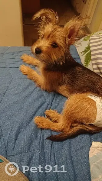 Девочка, 5-6 месяцев, похожа на йокширского терьера, на высоких лапах, темная спинка, грудь и лапы желтого оттенка! Была найдена возле мусорных контейнеров!