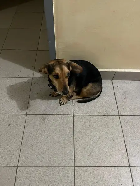Смесь таксы и беспородного, иногда гавкает на прохожих