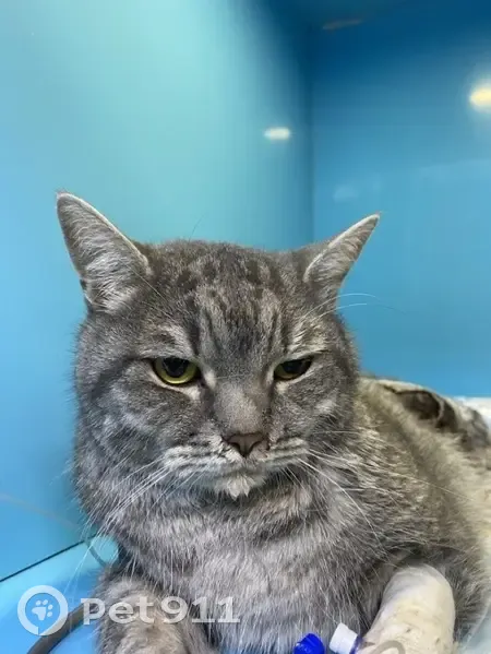Серый кот около 7,5 кг, возраст 5 лет плюс/минус, возможно кастрированный. Большой, голова крупная, лежал под машиной плакал, поврежден бок, скорее всего собаки подрали. Сейчас находится в стационаре на лечении и стабилизации. Немного позже еще фото добавлю. Если кто узнал и сомневается, сохраните это объявление, буду добавлять фото и видео