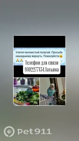 Улетел попугай волнистый голубого цвета, маль...