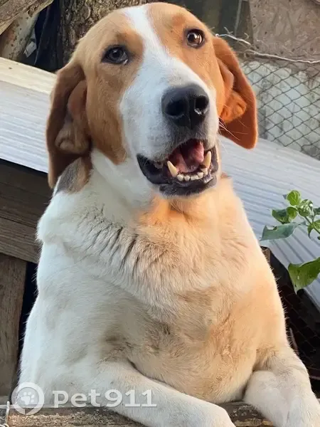 Собака крупная, трех цветов. Охотничья. Очень дружелюбная. Убежала в районе села Варваровка. Возможно у кого-то во дворе спряталась