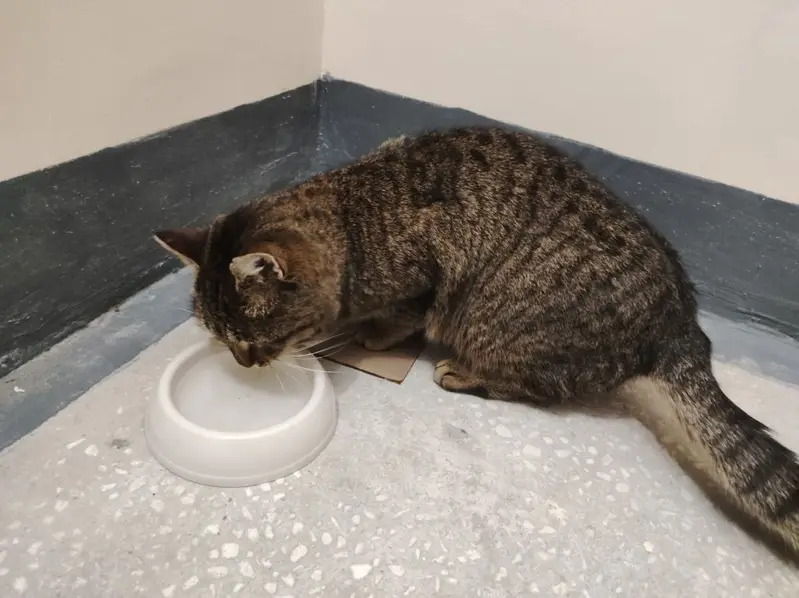 Окрас коричневая в полоску, на ушках маленькие кисточки , мордочка круглая , пугливая , может откликаться на свое имя Асти , реагирует на шуршание пакетика от корма , но из-за страха может не выйти