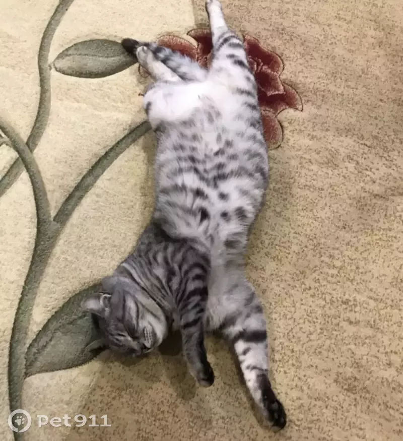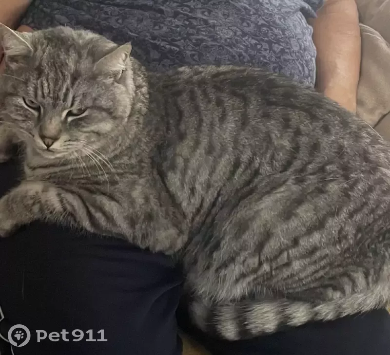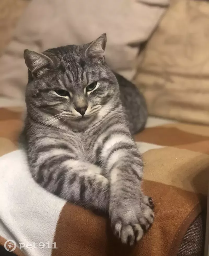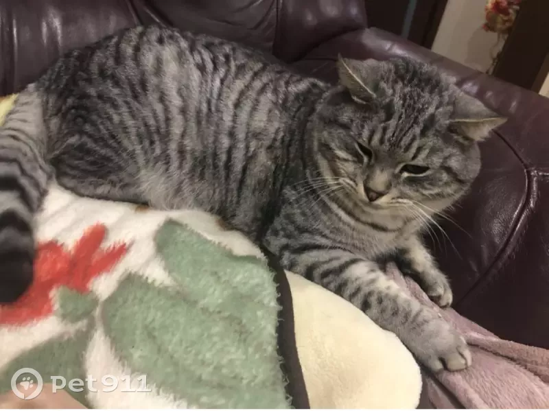 Пропал кот, окрас серый в чёрную полоску,возраст 6-7 лет,домашний ,упитанный,помесь с британцем, был с ошейником чёрного цвета.Отзывается на кличку Маркиз.