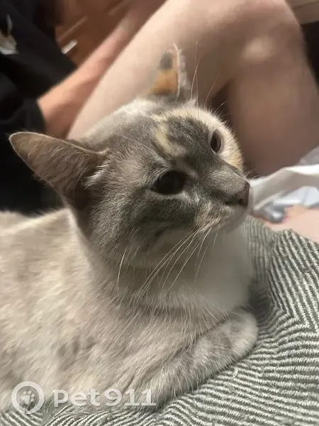 Голубоглазая кошечка , кремового расцвета, вышла в дверь подъезда , кошка бесшумная, мяукает очень тихо Ее имя Мася Может быть в стороне гражданской улицы