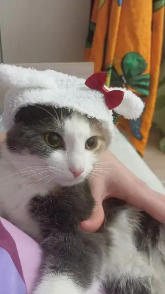 Кошечка ласковая, красивая, шерстка плюшевая.