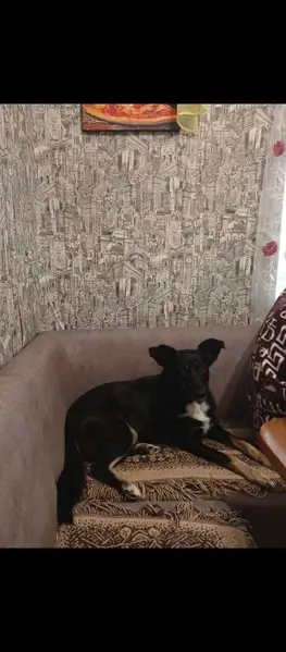 Чёрная, с белой грудкой,коричневый ошейник