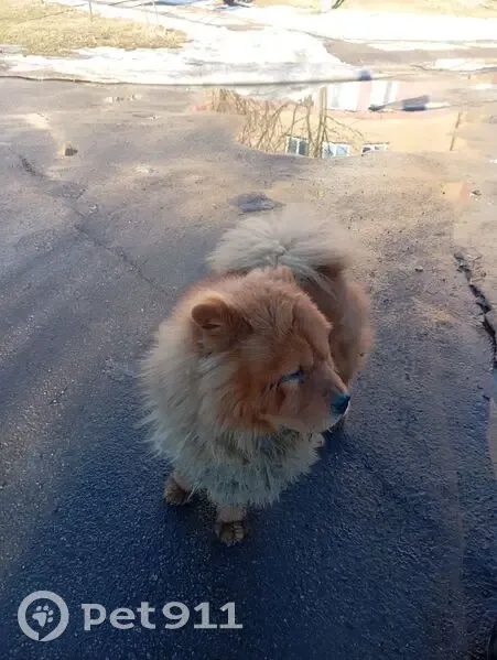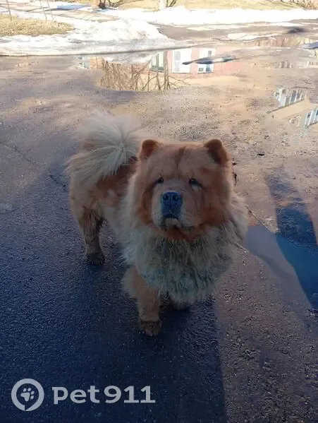 Чау-чау рыжая бегает по округе 3 дня. Шерсть длинная на шее, фиолетовый ошейник.