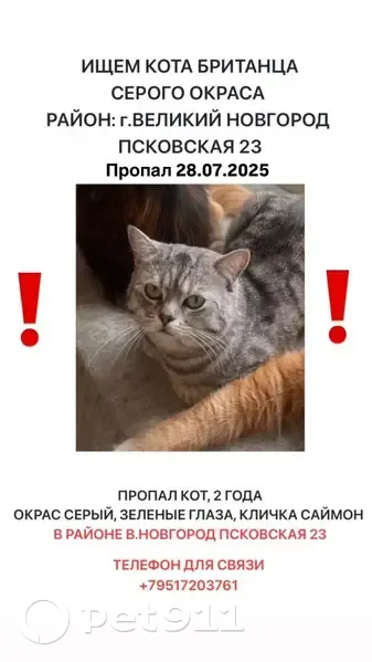 Объединено с объявлением rl1040185. Причина-дублирование информации. Описание дублирующего объявления: Серый кот, с зелеными глазами По любой информации звонить 89517203761