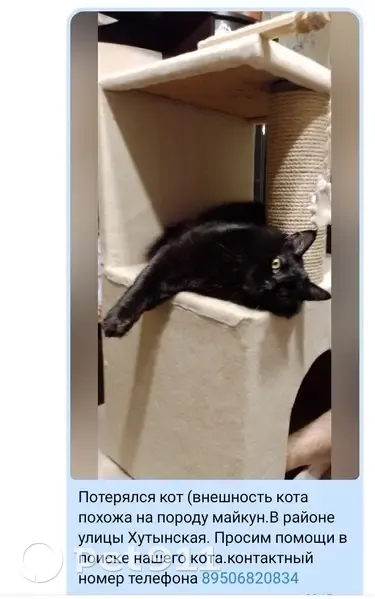 Потерянные животные Великий Новгород, фото: Пропала чёрная кошка, Хутынская ул, 21 к1