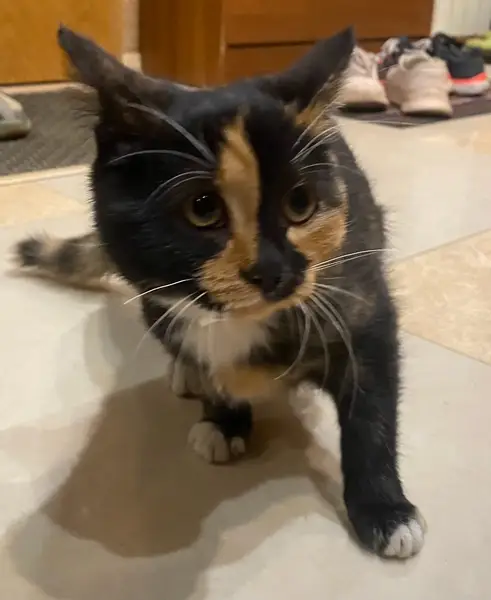 Ушла с участка кошка девочка, 7 лет, окрас трехцветный, приметный, на подбородке черное пятно, домашняя.