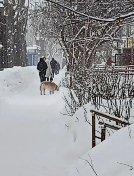 Крупный, добрый, рыжий с белым десятилетний пес.