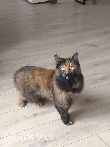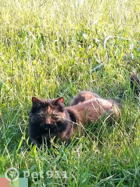 Трёхцветная молодая кошечка с жёлтыми глазами, стерилизованная. Молчаливая, редко подаёт голос. Особенность: нижние клыки длинные. Местность знает, всегда возвращалась. 22 июня не вернулась. Зовём, ищем, но пока безуспешно.