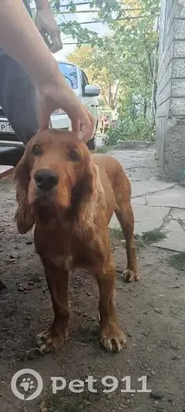 Рыжий Английский Кокер спаниель. Чипированный. Чип с регистрацией в России и Турции. На левой передней лапки в районе колена есть лишай. Ошейник рыжий. Стриженный. Очень хорошо откликается на имя. Очень общительный и тактильный. Добрый, ласковый. Всегда возвращался домой.