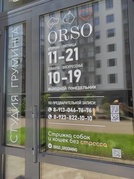 В Центральном районе города расположена студия груминга Orso. Специалисты этого салона занимаются уходом за шерстью и когтями домашних животных. В их работе используются методы, направленные не только на улучшение внешнего вида питомца, но и на заботу о состоянии кожи и ушах. Клиенты могут рассчитывать на профессиональный подход к процедурам ухода за шерстью.