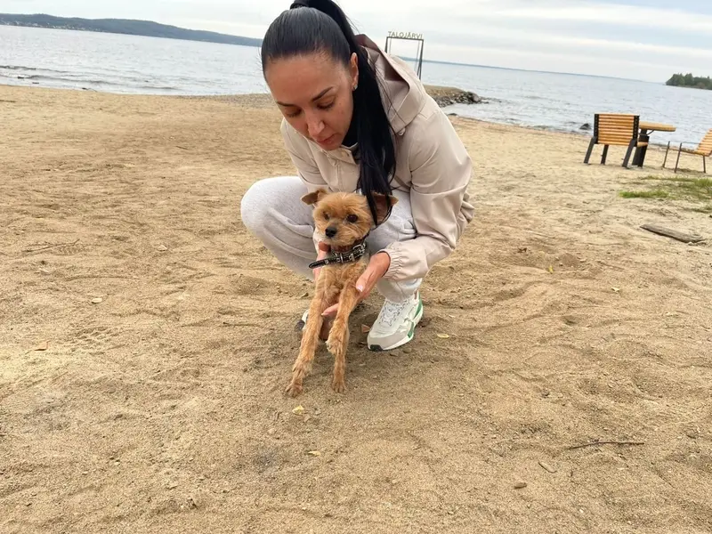Убежала во время прогулки в сосновом бору. Собака метис Йорка, рыжая с тёмной спинкой, в бежево-коричневой шлейке. Ориентирована на человека по принципу «я вас не знаю, но уже люблю.»