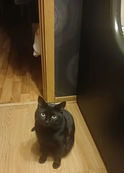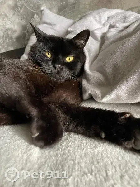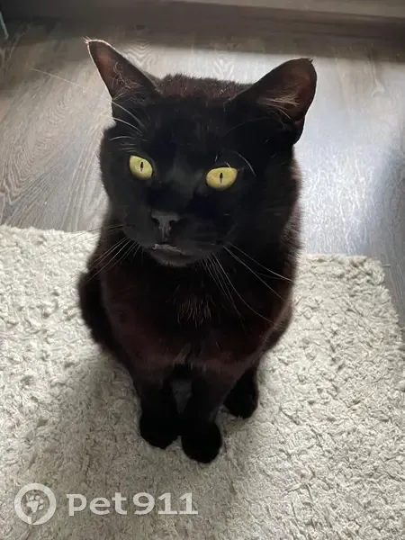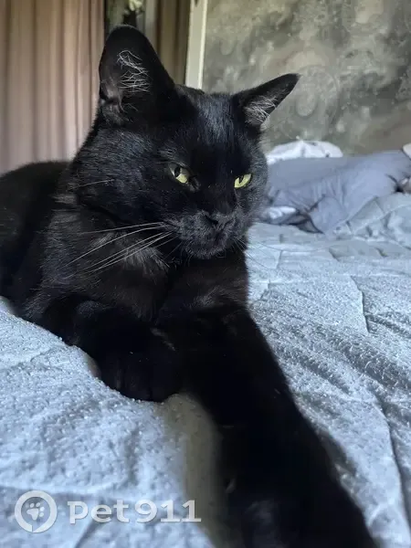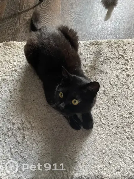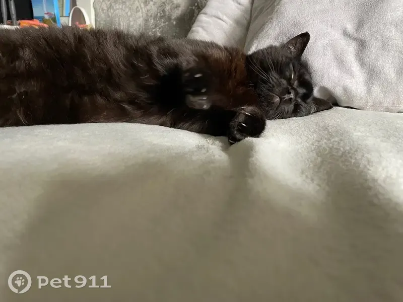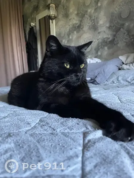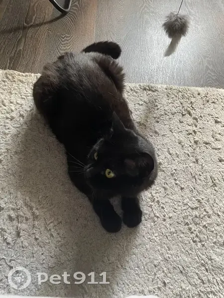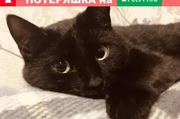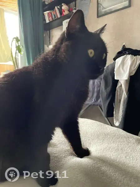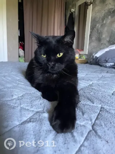 Найден большой черный кот. Кастрат. Глаза желтые. Кончик хвоста надломлен. Мяукает громко. Ест все и много. Проседь на шее. Найден в районе парка напротив налоговой г. Видное , где находится подстанция скорой помощи. Если кто узнает своего питомца, звоните 89687268550