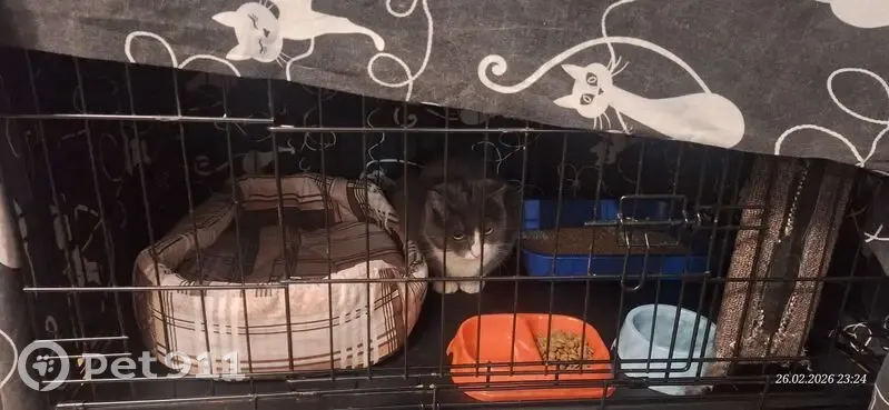 22 февраля в домовой чат прислали фото, с 26 на 27 в ночь забрали на передержку. Мальчик, ласковый, ручкой, около года, не кастрат, на собак не реагирует, на котов шипит
