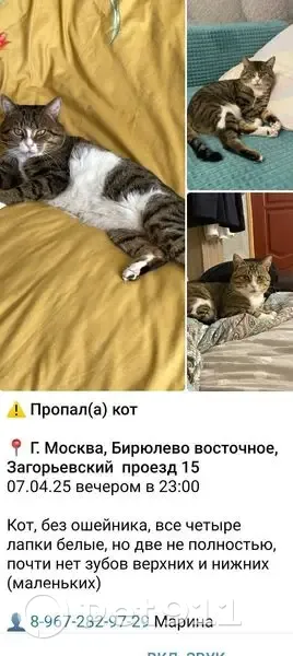 Пропал кот, Загорьевский проез...
