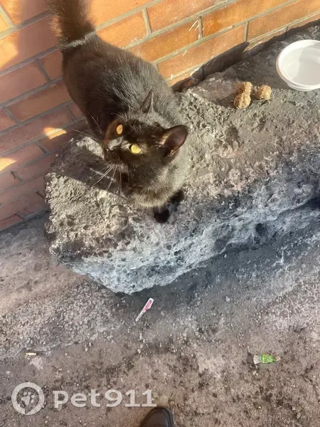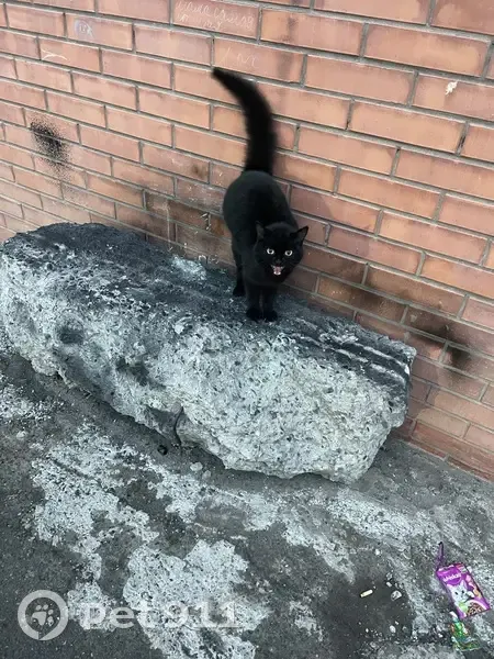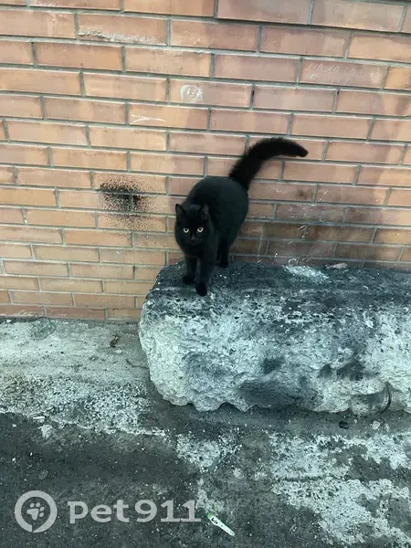 На З Магкаева Найдена Чисто черная кошка. ( вроде девочка) молодая. До годика или год . Очень ласковая. Идет на руки. Чистая- как домашняя. Видно, что потерялась.