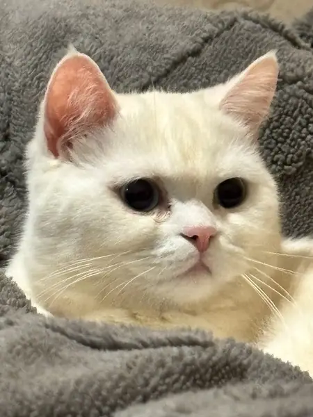 В начале зимы у мужа в гараже появился котик. Светло-бежевого окраса(палевый), ушки маленькие чуть серые, очень голодный, но чистый. На вид котику месяцев 9-12. Так и остался у нас в гараже. Рядом многоэтажки и частные дома, возможно котик случайно убежал. Повадки домашнего котика .