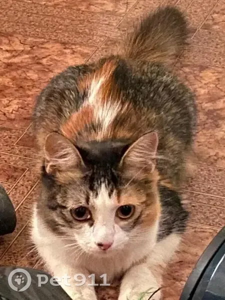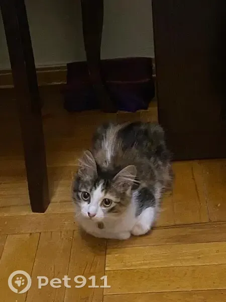 Трехцветный котенок, девочка, ошейник красного цвета с подвеской. Ласковая, но пугливая. Выпрыгнула с 5 этажа. Нашедшему Вознаграждение гарантирую. Тел +79840007722 Диана