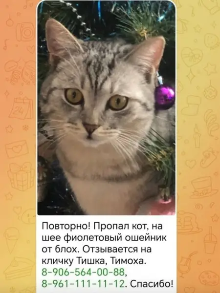 Взрослая британская кошка серебристая шиншилла найдена в пос.Боголюбово, ищем старых или новых хозяев. Очень ласковая, не агрессивная, кушает любую еду.