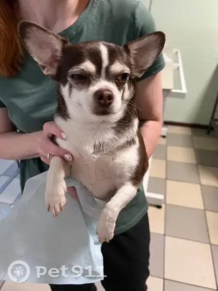 Ехали по Судогодскому шоссе, собака бежала по дороге и бросалась под машины, поймали, отвезли в клинику Симба, там согласились оставить его на передержку Мальчик, чихуахуа, кастрирован, с клеймом