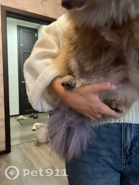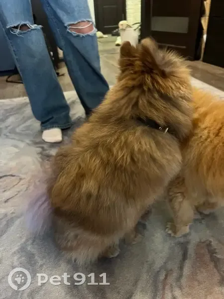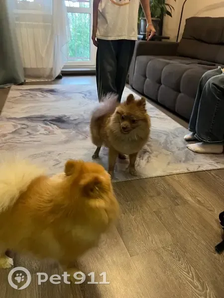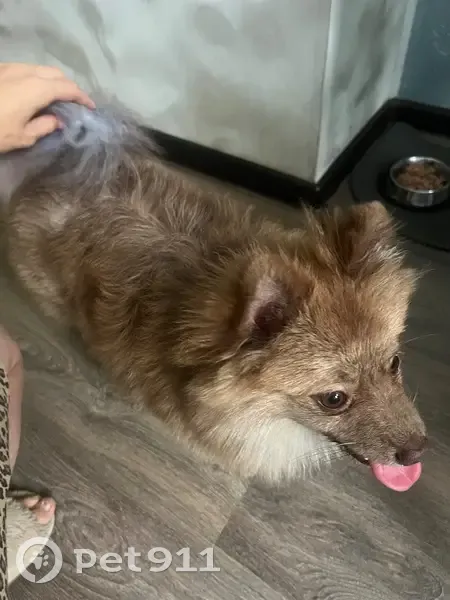 Мальчик , похож на немецкого шпица , дружелюбный , после недавней стрижки . Есть ошейник и красивый хвостик (хозяева знают) . Коричневый , глаза тоже коричневые