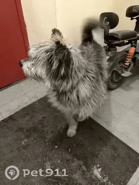 В ночь с 14 на 15 декабря во дворе обнаружена собака, крупная с ошейником и чипом жёлтым в ухе. До этого не видели, скорее всего потерялась. Пустили, видимо погреться в подъезд, просилась на улицу, мы выпустили.