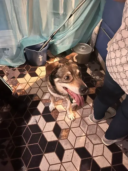 Была найдена собака, бежала вдоль дороги, продержали.