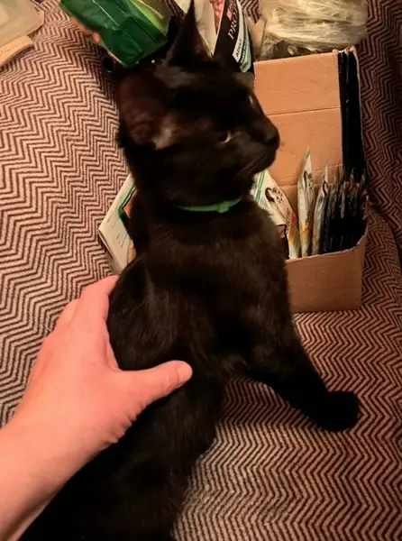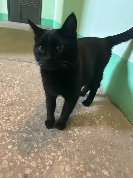 Ушёл гулять, и не вернулся. Окрас полностью чёрный, без единого пятнышка. На нём красный ошейник от блох с белой защёлкой. К людям относится с осторожностью. Говорят, его видели в районе 27 школы.
