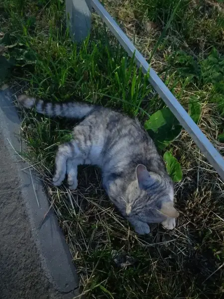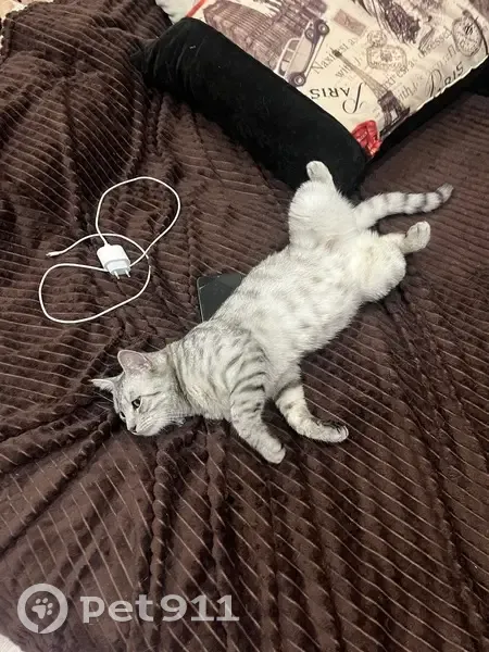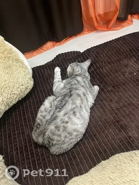 Котик небольшого размера , кастрированный .( попа в зеленке ) , разговорчивый и громкий парень . Ласковый , к людям подходит . Серый окрас с черными полосками . Кот домашний , пугливый . Спрыгнул с 1 этажа 20.04.2025 г в районе 12:00 на Соколова - соколенка 4, 3 подъезд . Город Владимир