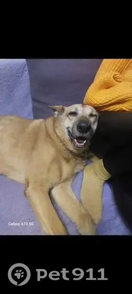 Собака размером с овчарку. Окрас рыжая. Морда седая. На носу шрам. Видит плохо. Слышит плохо. На контакт с чужими людьми идет. Не агрессивная. На шее ошейник. Зовут Тима.13 лет. Пропала вером около 22:00 в неизвестном направлении. Никогда не отходила дальше 20 метров от хозяина. Боится громких хлопков типо питард или фейерверков.