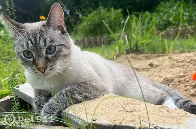 Пропал утром 14 июля. Кличка Май. Ушел с красным тонким кожаным ошейником с номером телефона. Кот не крупный, глаза голубые, на задней левой лапке белый носочек. Цвет шерсти палево-серый, хвост полосатый. Кот пугливый, боится чужих людей.