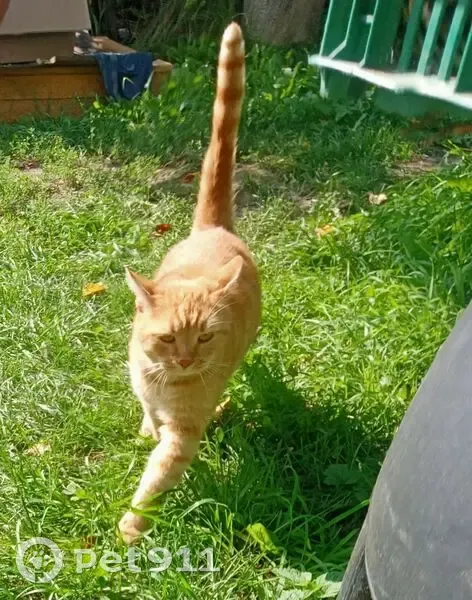 Кличка Татоша или Рыжий, может не отзываться, без ошейника, взрослый, общительный (часто мяукает), стерилизованный