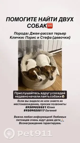 Здравствуйте! Просьба помочь распространить следующую информацию среди вашего региона: Во Владимирской области, Ковровский район, пгт Мелехово пропали две собаки породы Джек-рассел-терьер. Исчезновение произошло 18 сентября 2025г. Собаки вышли из частного дома и могли потеряться либо быть кем-то подобраны. Возможно, они находятся сейчас на чьей-либо передержке. Описание животных: - Перис, возраст 5 лет, окрас белый с коричневыми пятнами на спине и голове, купированный хвост, уши приподнимаются, есть клеймо на животе. - Стефани, возраст 3 года, белая с коричневым пятном возле хвоста, коричневая голова, длинный хвост, уши правильные «конвертиком», имеет пищевую аллергию, питалась специальным кормом. Животные очень привязаны к дому и хозяевам. Любая информация о возможном месте нахождения будет крайне полезна для нас. Контактные телефоны владельцев: Юлия — +7(920)902-88-21 Евгений — +7(920)902-88-17 Заранее благодарим за помощь и содействие. Вознаграждение нашедшему гарантируем.