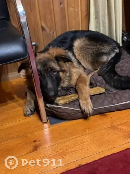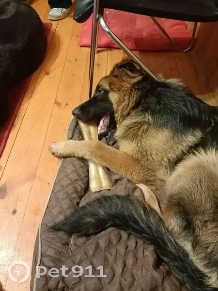 Немецкая овчарка, на ошейнике красная бирка (адресник) в виде косточки, с контактами для связи. Убежала днём во время прогулки. В ухе есть клеймо. За возвращение питомца гарантируется вознаграждение. 8-903-783-86-56