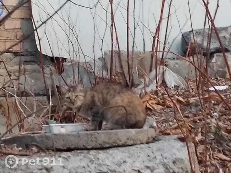Кошка светло-коричневого цвета, вокруг шеи темная тонкая полоска спереди, которая выглядит как-будто на ней надет ошейник. Кошка явно домашняя, бегает в стрессе, громко мяукает, очень голодная, прихрамывает на переднюю лапку. Близко не подпускает, пугливая, пол трудно определить издалека, но судя по всему это девочка.