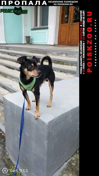 Найдена собака Карликовый пинчер в районе Сиданки во Владивостоке Мальчик чёрный с рыжими подпалинами без ошейника. Бегал по трассе Седанкинский подъём, полоса по направлению к городу.