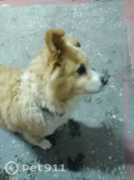 Собака среднего размера, окраска бело рыжая, треугольные уши, мальчик, на шее кожаный ошейник коричнего цвета. Был найден в подъезде по адресу Никифорова 55, подъезд 4. Видно что домашний очень добрый, активный