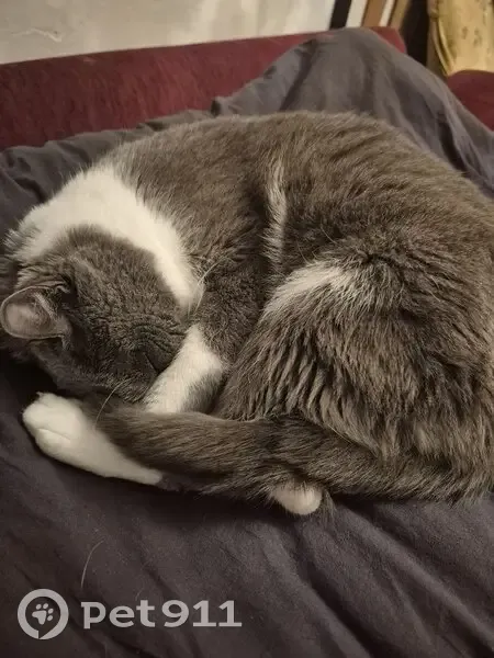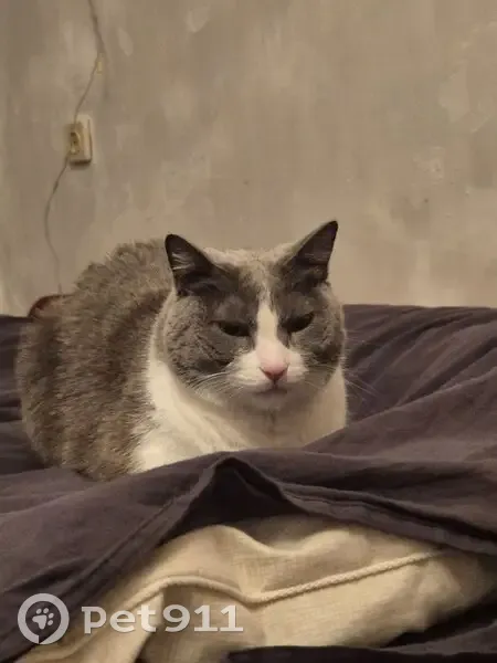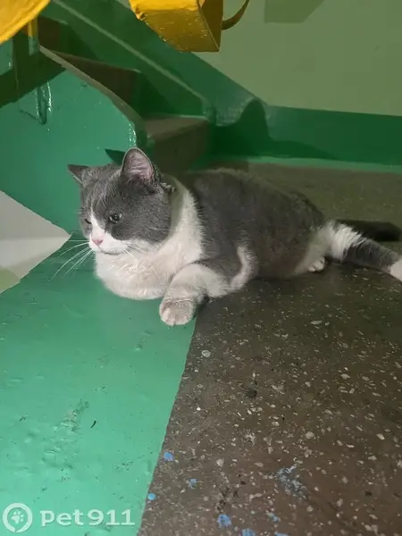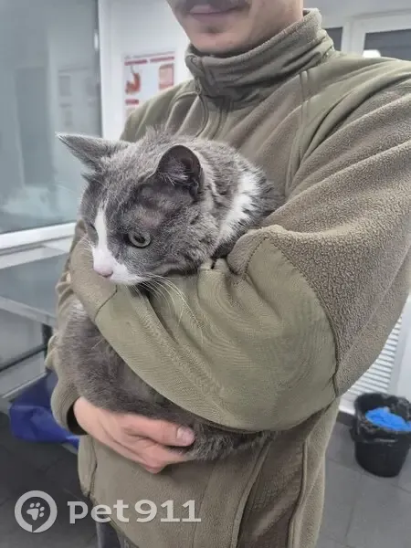 Серый, мордочка белая, выбежал из квартиры, далее, скорее всего, его выгнали из подъезда, так как он очень громко «кричал» он возрастной, недавно вырвали ему больной клык ему очень нужно лечение! Пугливый, мог где-то «заныкаться», но всё обследовали, никаких признаков «нового дома» не обнаружили