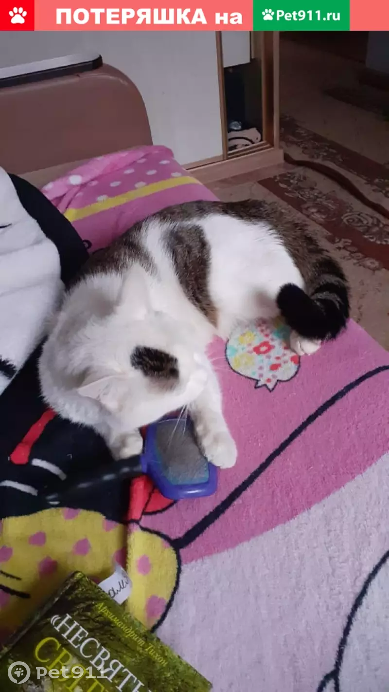 Приметы- белый с чёрным и коричневым. Глаза серо-жёлтые. На голове пятнышко с чёрными полосками. Огромная просьба если котик найден сообщить по этому номеру +79502950476.Кто найдёт ждёт не большое вознаграждение.