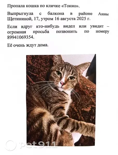 Потерянные животные Владивосток, фото: Пропала кошка, проспект 100-летия Владивостока