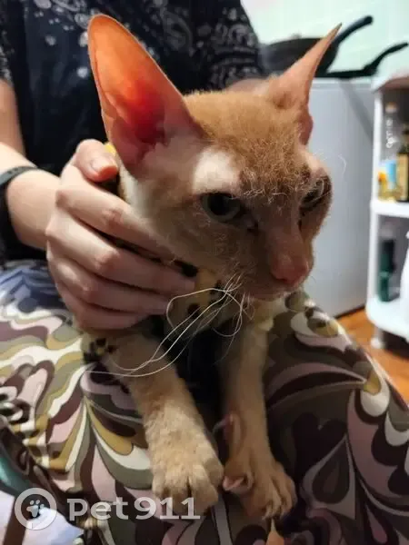 Кошка была найдена в подвале на Черникова 32, в пятнистом жёлтом костюме. Порода Корниш рекс, стерилизована, возраст определить не удалось. Очень ласковая и спокойная. Хозяева отзовитесь!