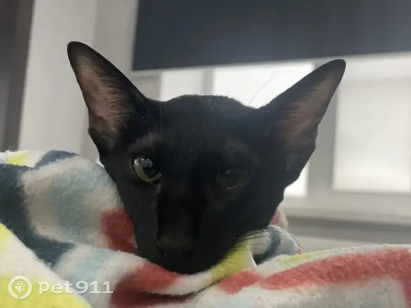 Пропала кошка черного цвета породы орентал, отличительная черта кончик хвостика сломан, откликается на имя кошка, идет к людям очень тактильная, просим вернуть за вознаграждение
