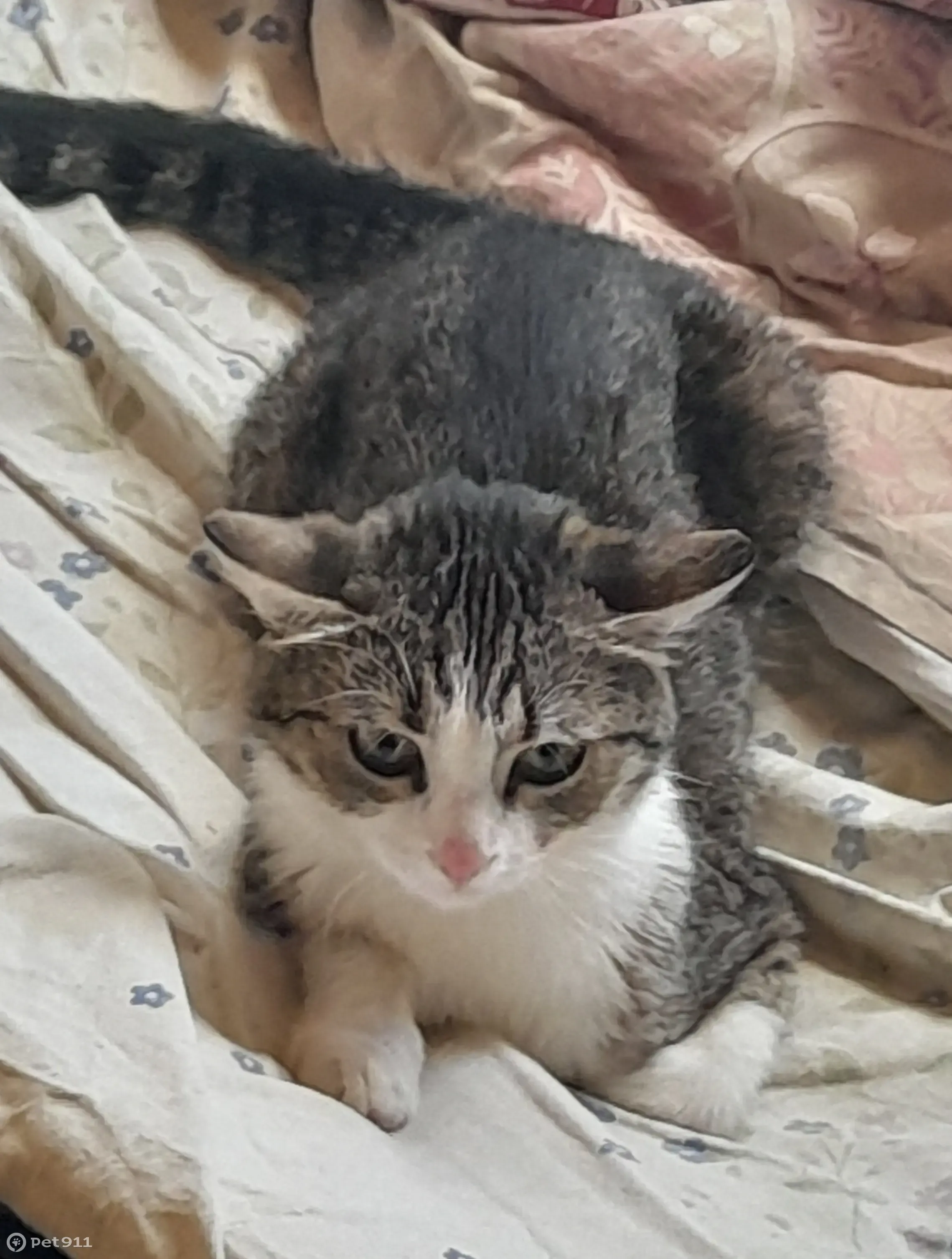 Потерялась Кошка цвет по бокам серый а живот...