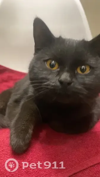Окрас черный, глаза оранжевые, на вид 7/8 мес...