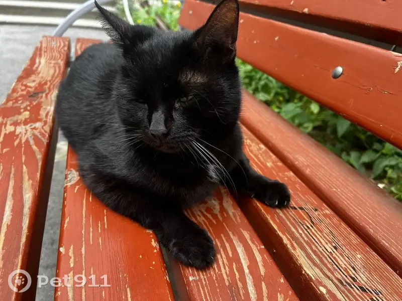 Черный кот с зелеными глазами, когти подстрижены, ласковый, чистый. Лежит на скамейке у дома Двинская, 20. Недавно искал похожего потеряшку с Рокоссовского, 42, может он? Звоните 8995 032 35 77 Марина